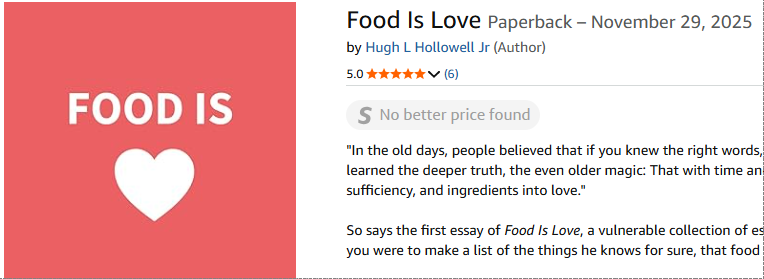 So, if you have purchased Food Is Love, got a free copy of the PDF because you are a member, or even read a borrowed copy, PLEASE leave a review on Amazon or Goodreads, or both. It is a huge help, and dramatically improves the odds of more people reading this book.